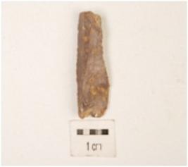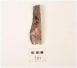 | Description / विवरण | Broken flake with a striking platform on one end, with prominent bulb on one end, use wear marks on edges. |