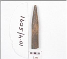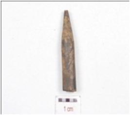 | Description / विवरण | A fragment of point made on bone, working end is missing, upper part is boken and circular cross section. |