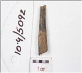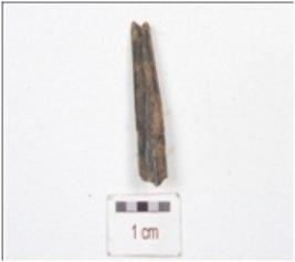 | Description / विवरण | A fragment of point made on bone, upper part is broken, working end is missing and circular cross section. |