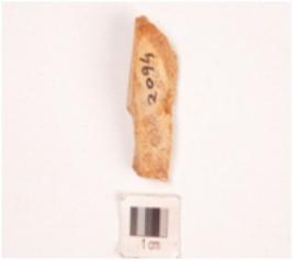 | Description / विवरण | A chert blade with use-wear marks along the cutting edge and distal end broken. |
