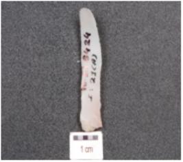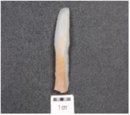 | Description / विवरण | Parallel sided blade made on chalcedony, prepared platfrom, prominent bulb and use wear marks on the working edges. |