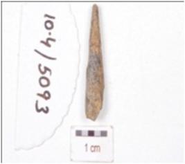 | Description / विवरण | A fragment of point, made on bone, pointed on one end, upper parts broken and irregular cross section. |
