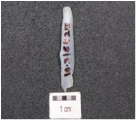 | Description / विवरण | Parallel side blade made on chalcedony, prepared platfrom, promient bulb and use wear marks on the working edges. |