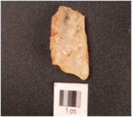 | Description / विवरण | A quartz end struck flake, prepared platform. |