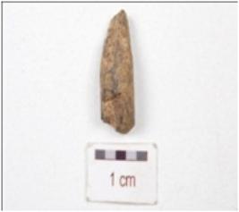 | Description / विवरण | Fragment of a bone point, pointed one end, broken other end and circular cross section. |