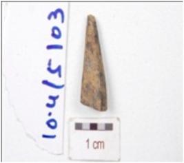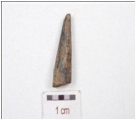 | Description / विवरण | Fragment of a bone point, pointed one end, broken other end and circular cross section. |
