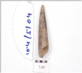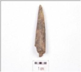| Description / विवरण | Fragment of a bone point, pointed one end, broken along other end and circular cross-section. |