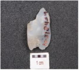 | Description / विवरण | Flake made on chalcedony, flake scas on the surface, prepared platform and prominent bulb. |