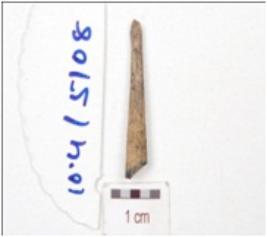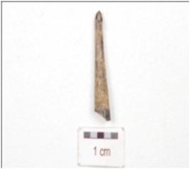 | Description / विवरण | Fragment of a bone point, broken along one end, pointed other end and circular cross-section. |