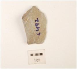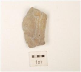 | Description / विवरण | A chert scraper flake, flake scars on the dorsal side and prepared platform on the proximal end, partly retouching on the cutting edge. |