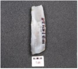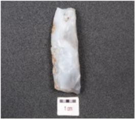 | Description / विवरण | Core made on chalcedony, blade scars on the surface and use-wear marks on the working edges. |