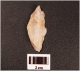 | Description / विवरण | A side scraper made on quartz end struck flake, unprepared platform and use-wear marks along the cutting edge. |