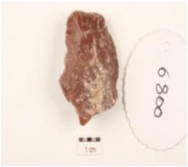 | Description / विवरण | Flake made on chert, prepared platform with flake scars on dorsal side and negative bulb on ventral side, marks along cutting edges. |