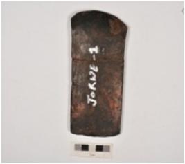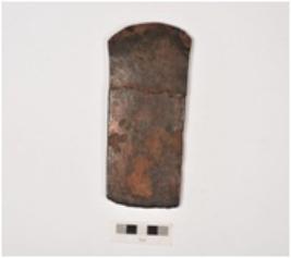 | Description / विवरण | A copper axe, flat at one end and sharp at other, meanded, slightly chipped off surface. |