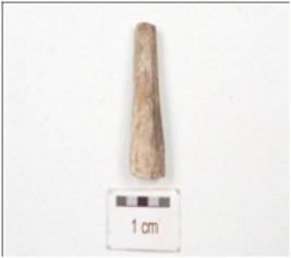| Description / विवरण | Fragment of a bone point, broken along both the ends and circular cross-section. |