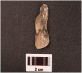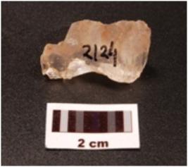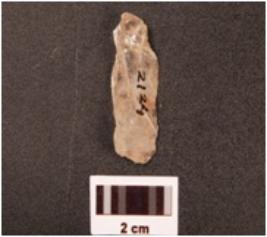 | Description / विवरण | A crystal blade with a ridge on dorsal side, prepared platform, diffused bulb on ventral side, use-wear marks along the cutting edge and distal end broken. |