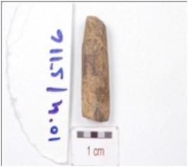 | Description / विवरण | Fragment of a bone point, broken along both the ends and irregular cross section. |