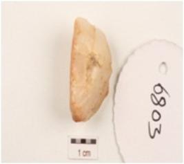 | Description / विवरण | Flake made on chert, prepared platform, use wear marks along cutting edge, flake scars on surface, visible cortex. |