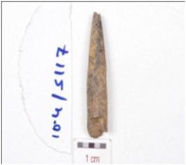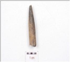 | Description / विवरण | Fragment of a bone point, pointed at on end, broken other end and circular cross-section section. |