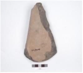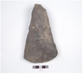 | Description / विवरण | Fragment of an unfinished celt, made on a basalt, cortex on dorsal, flake scars along the edges on dorsal pointed butt end, convex sharp cutting edges and plano convex cross section. |
