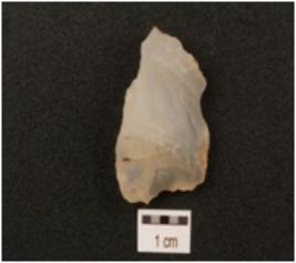 | Description / विवरण | Flake made on chert, flake scars on surface, use-wear marks along cutting edges. |