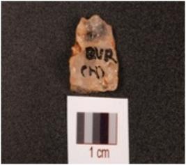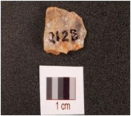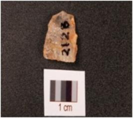 | Description / विवरण | A quartz end struck flake, diffused bulb on ventral side and prepared platform. |