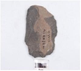 | Description / विवरण | A scraper made on basalt, bulb and platform absent, cortex and flake scars on dorsal and along the cutting edge on dorsal. |