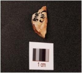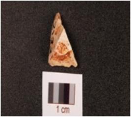 | Description / विवरण | A chert end struck flake, prepared platform and diffused bulb on ventral side. |