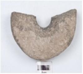 | Description / विवरण | Fragment of a mace head made on basalt, circular in shape and unpolished surface. |
