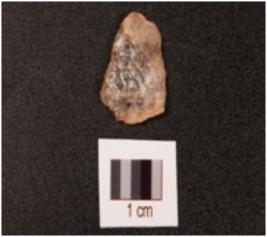 | Description / विवरण | A quartz end struck flake having use-wear marks along the edges. |