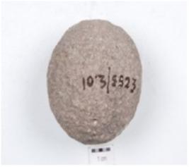 | Description / विवरण | A hammer stone made on basalt, circular in shape and pecking marks on surface. |