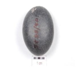 | Description / विवरण | A basalt pebble, oval in shape and smooth surface. |