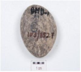 | Description / विवरण | A basalt pebble, oval in shape and smooth surface. |