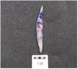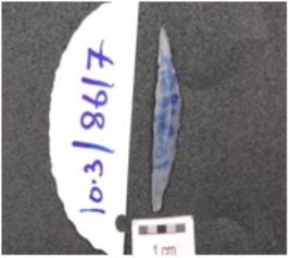 | Description / विवरण | A blade made by chalcedony, ridge on the dorsal side and partly retouched on the cutting edges. |
