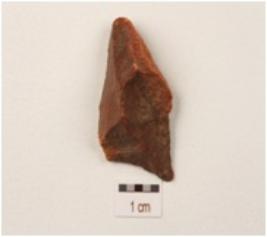 | Description / विवरण | A flake made on chert, irregular in shape, flake scars on dorsal side, use wear marks on edges. |