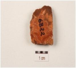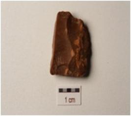 | Description / विवरण | A flake made on chert, uneven on surface, and, irregular in shape, use wear marks on edges. |