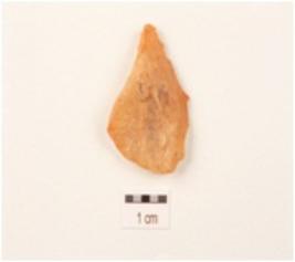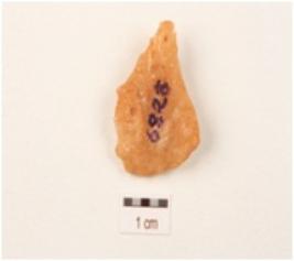| Description / विवरण | A flake made on quartz, uneven surface and irregular in shape, one end is pointed. |