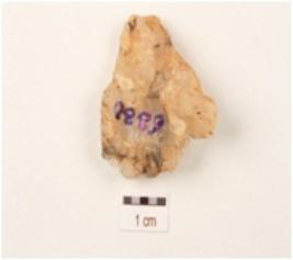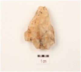 | Description / विवरण | A flake made on quartz, uneven surface and irregular in shape, flake scars on surface. |
