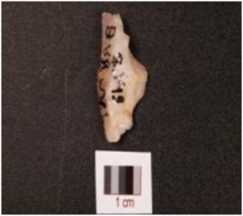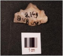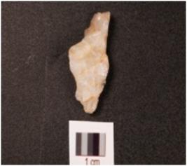 | Description / विवरण | A quartz end struck flake, prepared platform and diffused bulb on ventral side. |