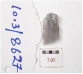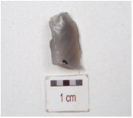 | Description / विवरण | A core made by chalcedony, prominent bulb on the ventral surface, blade scars on the dorsal side and partly retouched on the cutting edges. |
