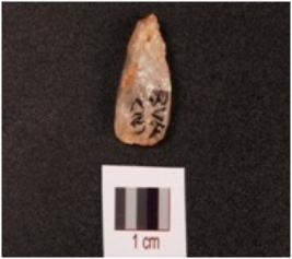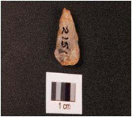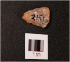 | Description / विवरण | A quartz end struck flake, unprepared platfrom. |