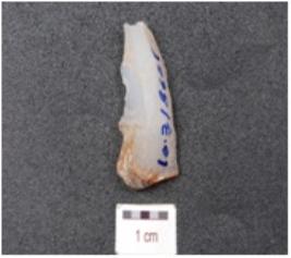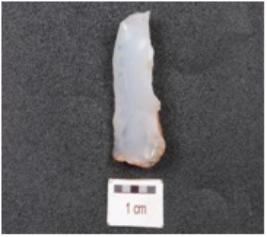 | Description / विवरण | A blade made by chalcedony, prominent bulb on the vental side, cortex on surface, flake scars on dorsal side and wavy cutting edges. |