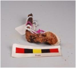 | Description / विवरण | Iron nail, curved from middle. Pointed ends, thick in character, rusted. |