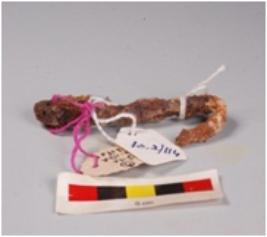 | Description / विवरण | Iron hook, curved from both ends, pointed thin in character, rusted. |