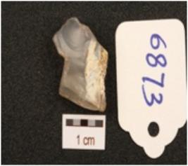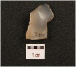 | Description / विवरण | An end scraper made on an end struck chalcedony flake, prominent bulb at ventral side, prepared platform, cross flake scars on dorsal surface, partly weathered surface. |