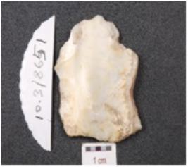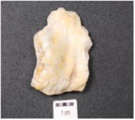 | Description / विवरण | A chert end struck flake, with ripple marks on the ventral side. |