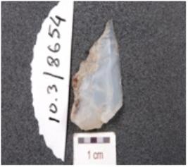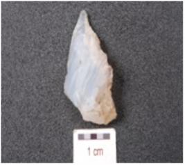| Description / विवरण | A point made on chalcedony flake, triangular cross section and prepared platform. |