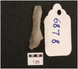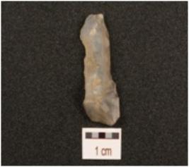 | Description / विवरण | A blade made on an end struck chalcedony flake, parallel sided, prepared platform, double ridged, diffused bulb at ventral side, regular retouching of the working edges. |