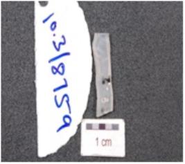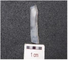 | Description / विवरण | Fragment parallel sided blade of chalcedony, prominent bulb on the ventral side and retouched cutting edges. |