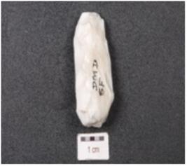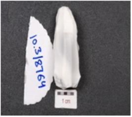 | Description / विवरण | A fluted core of chalcedony with five blade scars on the surface. |